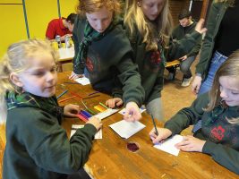 De creatieve bijeenkomst vond plaats op het scoutingsgebouw, waar de Welpen onder begeleiding van de leiding druk bezig waren met het knippen, plakken en versieren van kleurrijke kerstkaarten voor de Grote Kerstkaartenactie. Het resultaat van hun inspanningen is te bewonderen op de bijgevoegde foto’s!