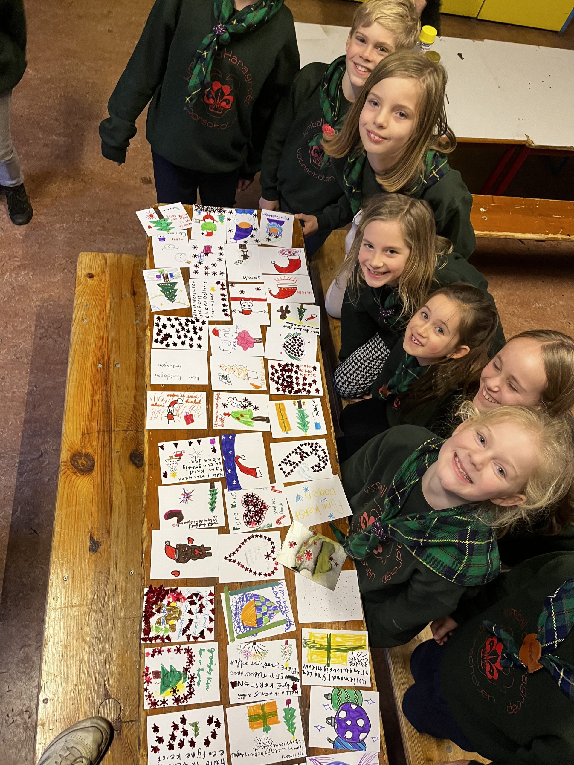 In een hartverwarmend gebaar van medeleven en saamhorigheid hebben de Welpen afgelopen zaterdag een bijdrage geleverd aan de Grote Kerstkaartenactie van het Nationaal Ouderen Fonds. Dit initiatief heeft als doel een warm hart te sturen naar ouderen die tijdens de kerstperiode alleen zijn. De kinderen hebben zich vol enthousiasme ingezet om prachtige kaarten te maken, als onderdeel van deze landelijke actie.